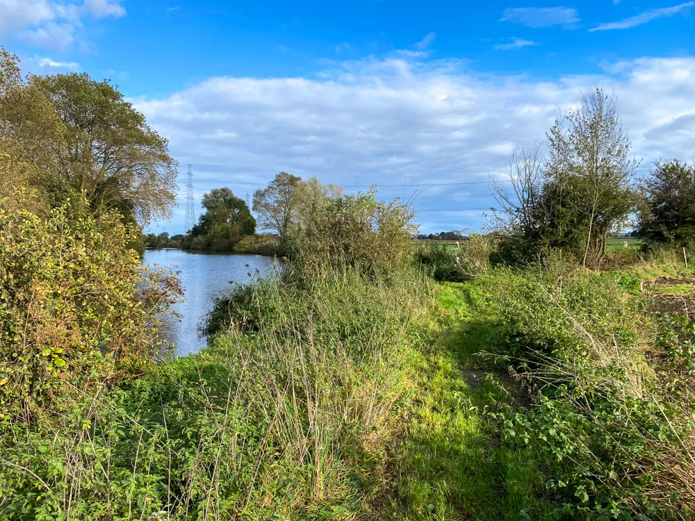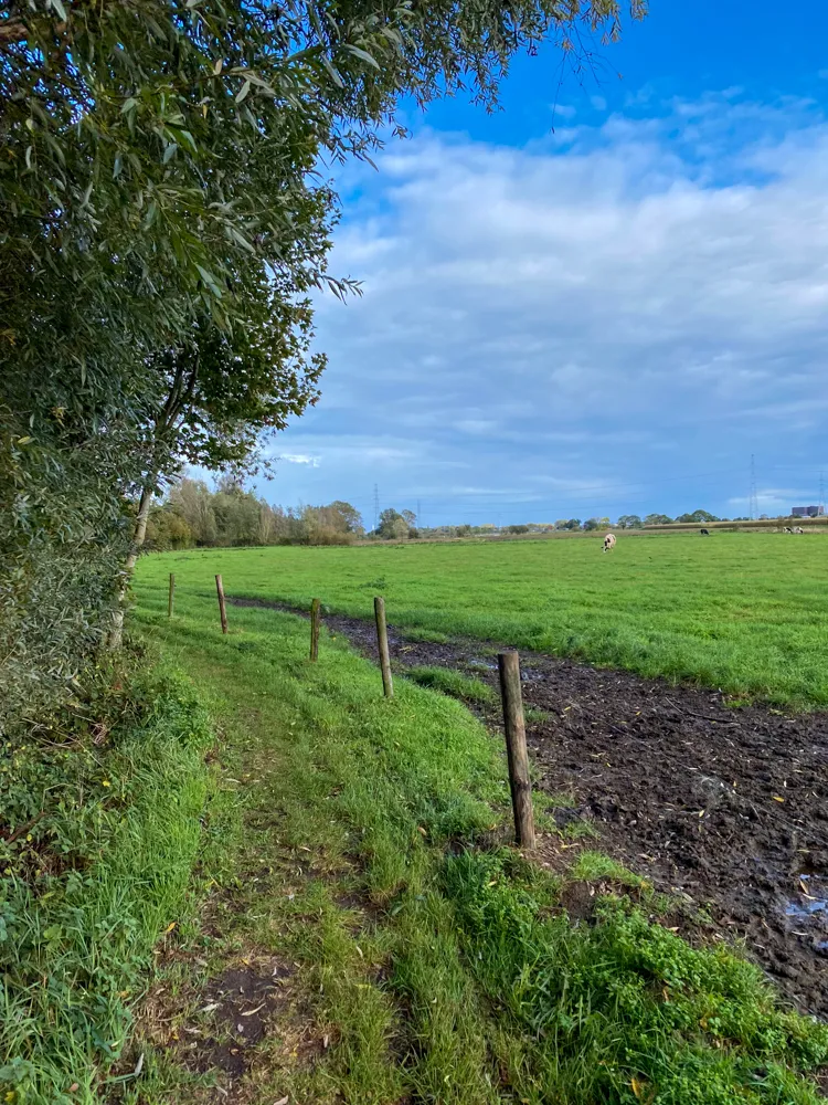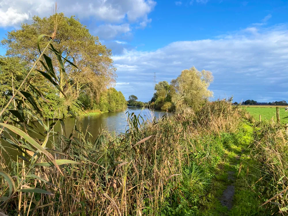Hier loop je dan een hele tijd langs de oevers van de oude Leiearm. Maar wanneer je aan het einde moet terugkeren en weer op het pad langs de oevers moet komen is er ergens een bordje verdwenen (of hebben wij er serieus over gekeken) Dus daar ging het voor een 2de keer mis. Let dus goed op dat je dezelfde fouten niet maakt.